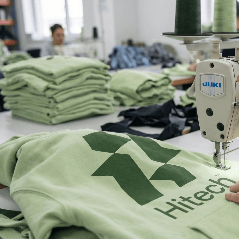 Tailoring a custom-made hoodie allowed us to accurately match Hitech’s corporate color and assemble a strong line of corporate clothing for employees.