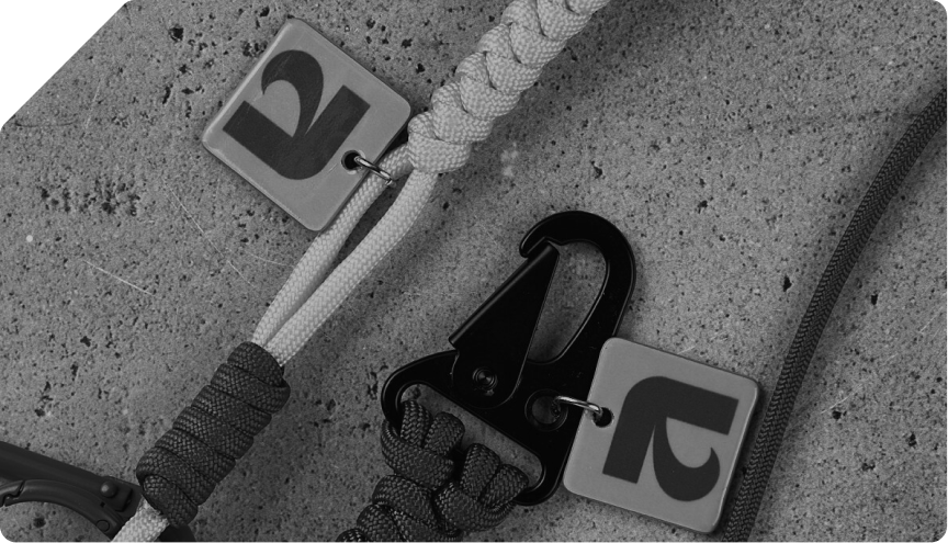 The perfect merch for outdoor brands. Durable bracelets and holders for bottles or phones that are not afraid of water, dirt and high loads.