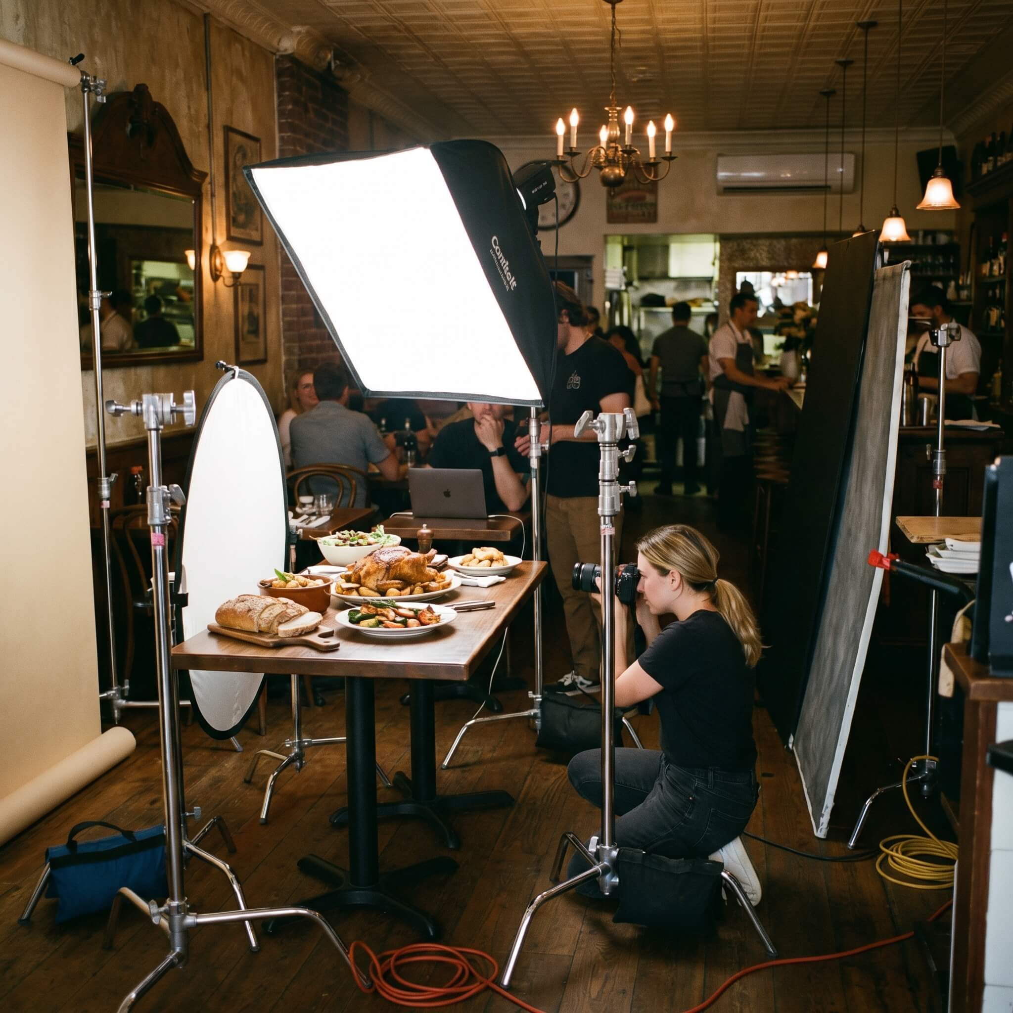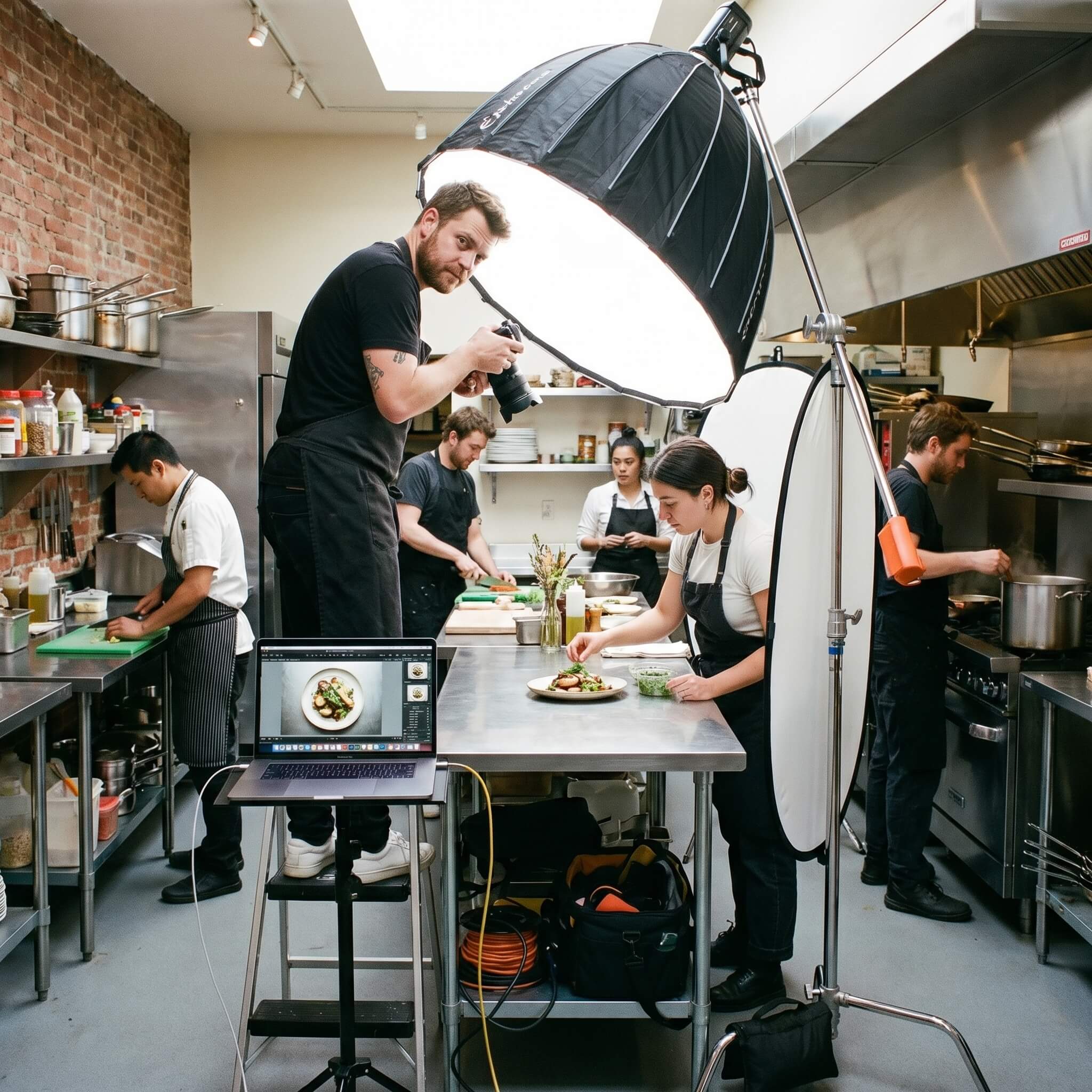 You don't need to bring food to the studio. Our photographer comes to your restaurant with professional lighting and equipment. Dishes are removed directly from under the knife, maintaining freshness, steam and perfect appearance.