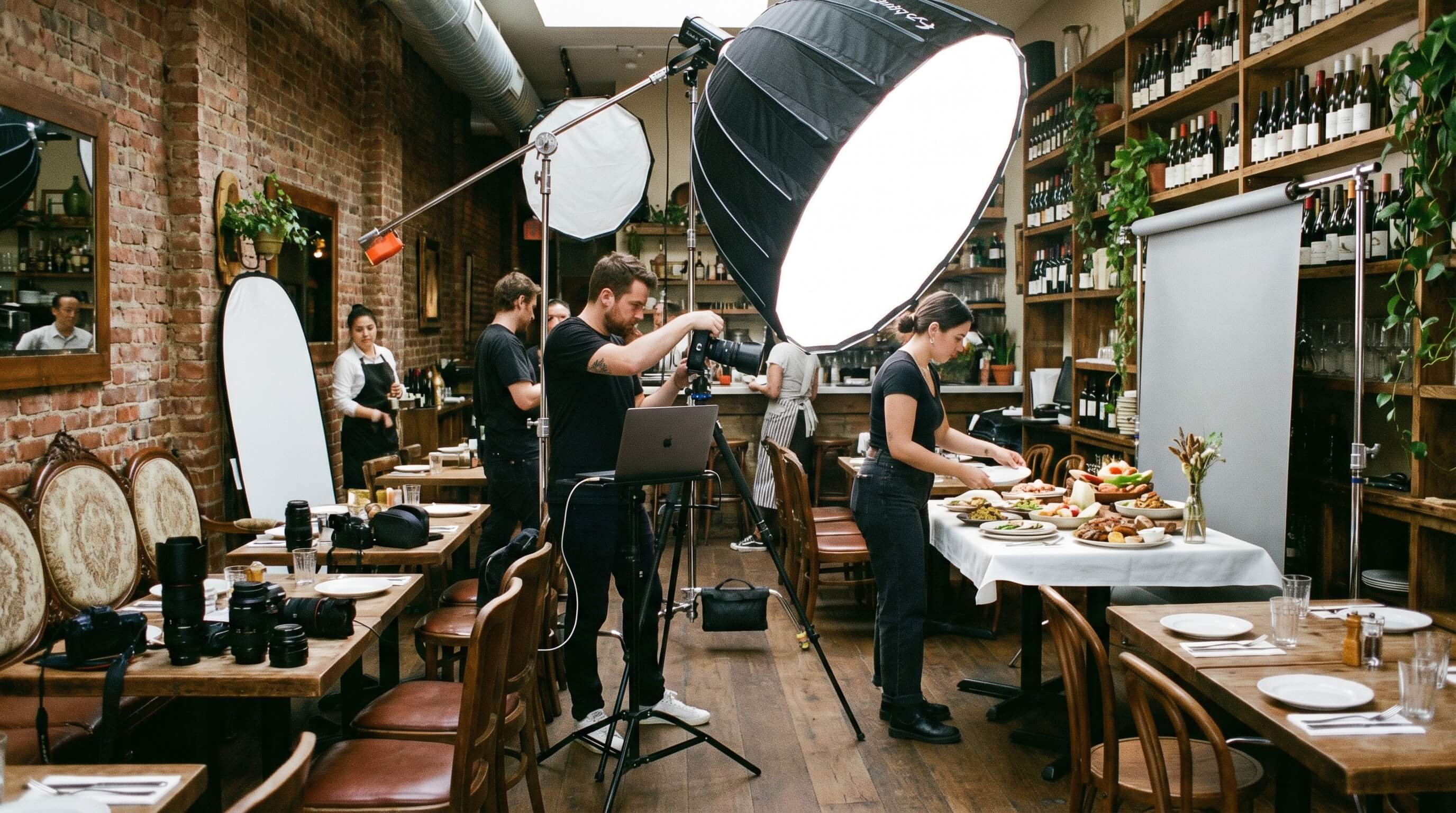You don't need to bring food anywhere. Our photographer comes directly to the restaurant with equipment to photograph the dishes fresh, straight from the knife.