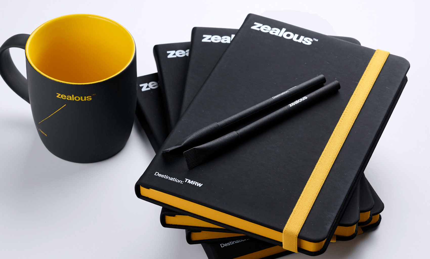 The project was commissioned by the PromoWorld advertising agency for the Zealous company. We have made a stylish set to order, including branded diaries, mugs and eco-friendly pens. The main idea of the project is to create a practical and visually cohesive employee suite that reflects the Zealous brand and makes working in the office more comfortable and inspiring.