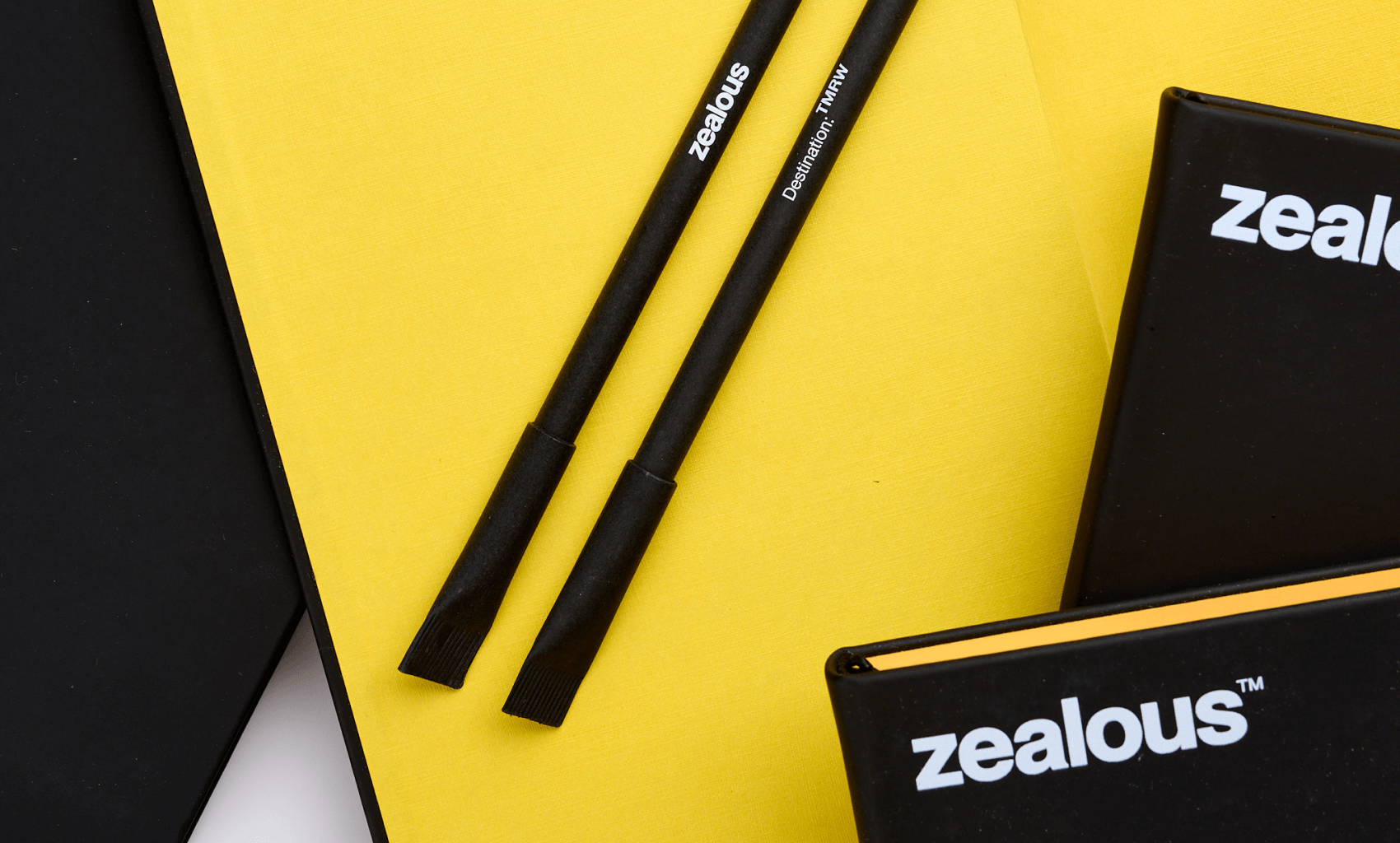 The set was carefully equipped and decorated in a single style, which emphasizes the premium quality of the set. Each element visually supports the Zealous brand: the black and yellow palette, the texture of materials and pure minimalism. The project was commissioned by PromoWorld for Zealous and became an excellent office set. ✨ We produce souvenir products from 50 pcs. — leave a request and we will prepare a personal solution for your company.