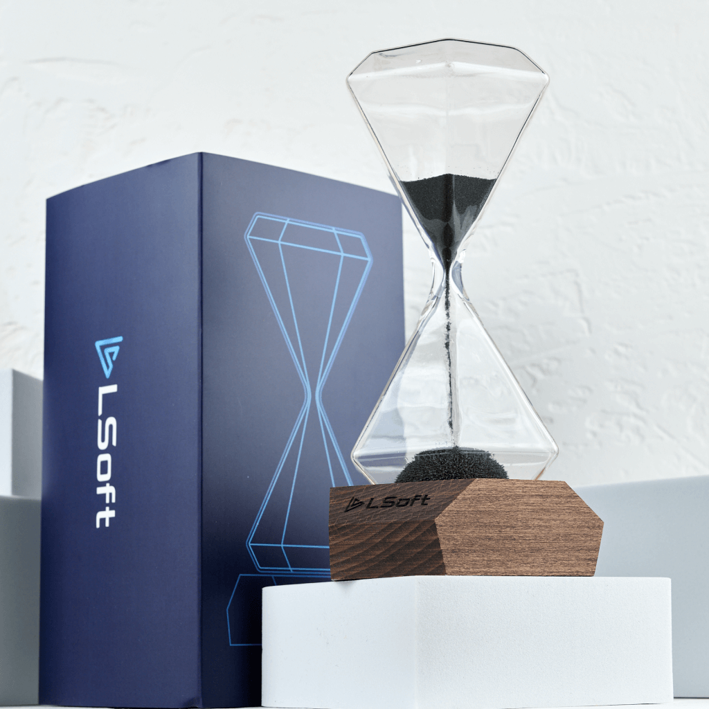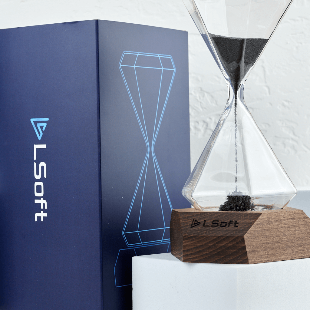 Corporate gift L Soft: magnetic hourglass on wood and anti-stress Philippi. Premium minimalism and a symbol of brand sustainability in a stylish solution.