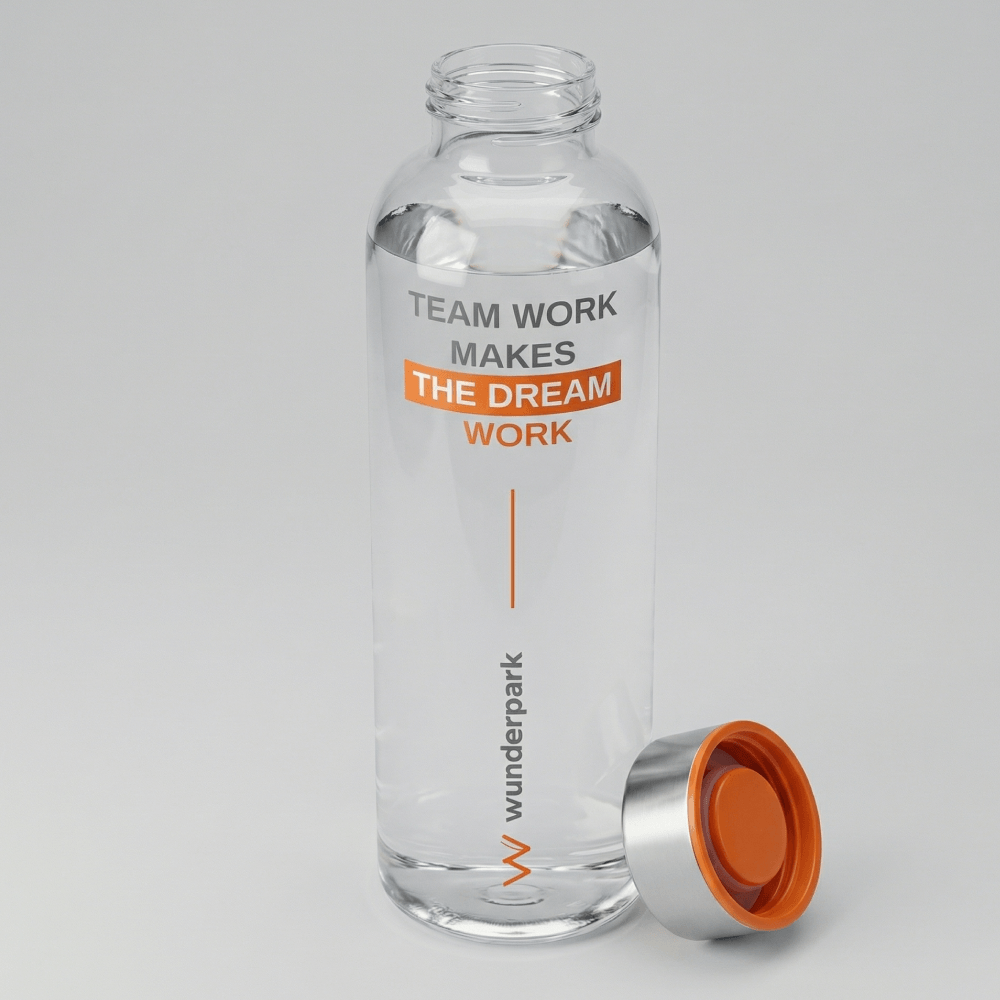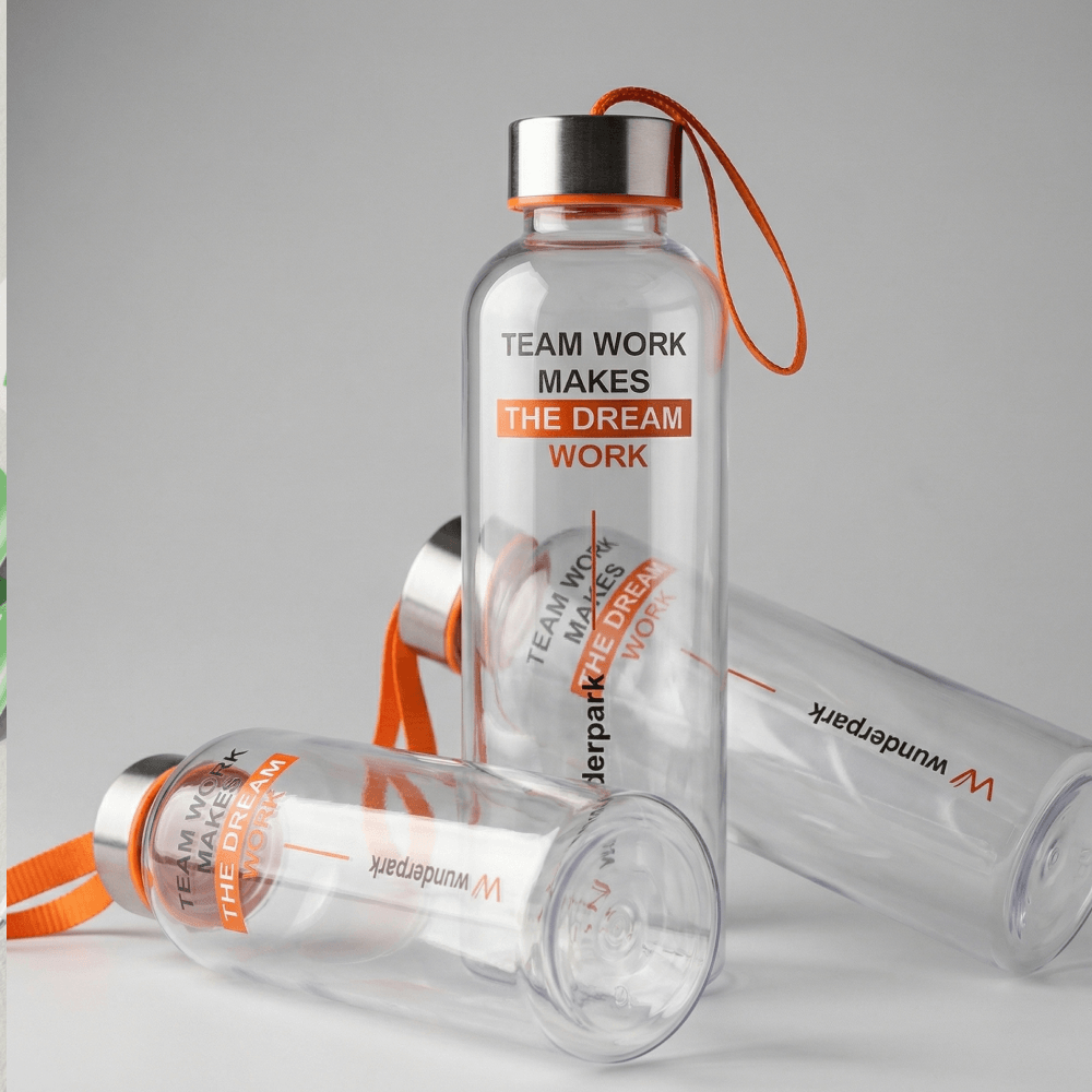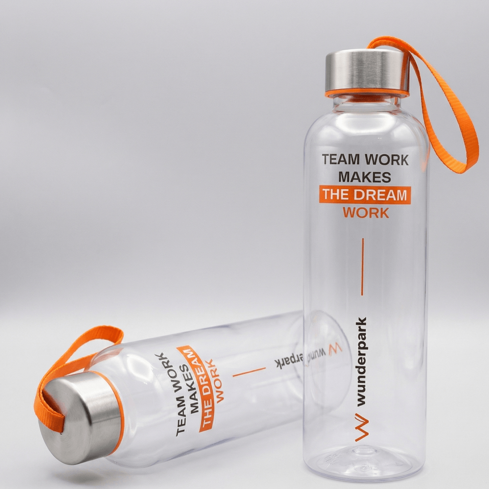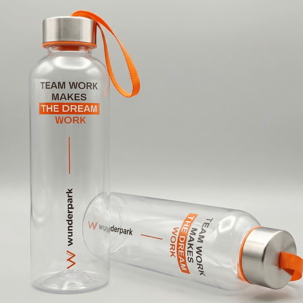 For the Wunderpark project, we prepared a branded water bottle, which became part of a single welcome pack concept for the school. The model is made of Tritan, has a volume of 450 ml and is suitable for daily use at school, on a walk, on the road and in classes. The material is light, durable and safe, does not contain harmful impurities, so it is perfect for children's and teenage sets.