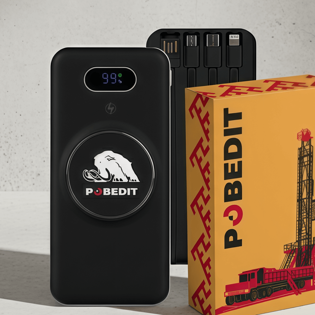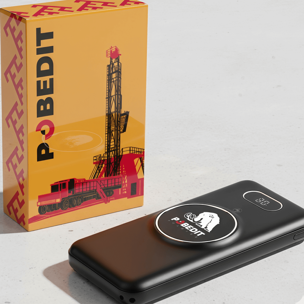Project for POBEDIT from Impulse Media: mugs, power banks, balls and blankets. Integrated design and merch that reflects the strength of the brand and becomes a symbol of partnership.