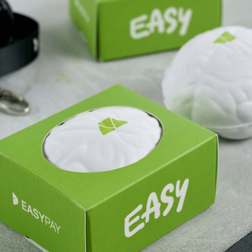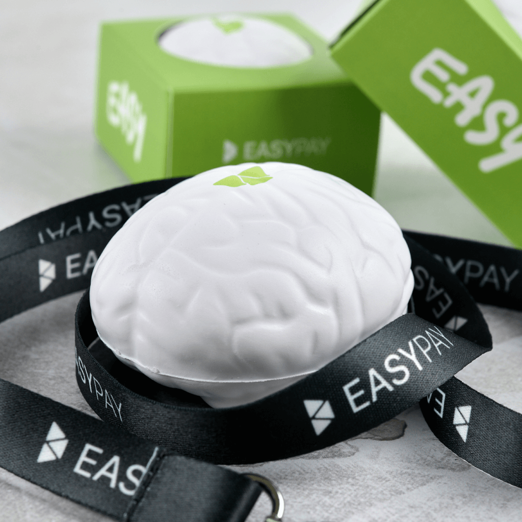 The main focus was the anti-stress in the shape of a brain, packaged in a branded box with a cut-out window. This approach to packaging design made it possible to transform a standard souvenir into an effective element of corporate style that attracts attention and evokes emotions. This decision emphasizes the importance of detail when producing custom merchandise.