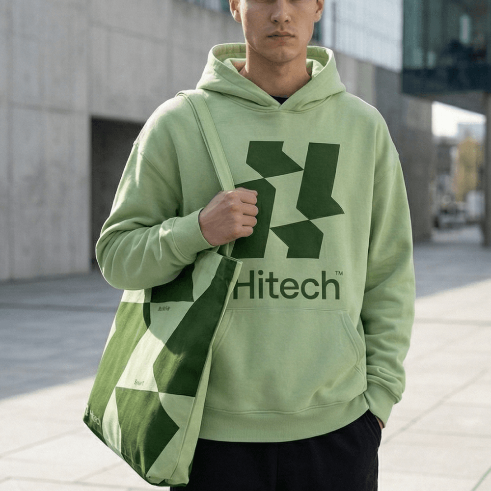 Merch for Hitech: hoodie and shopper