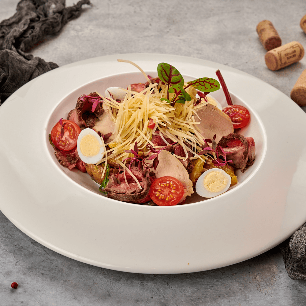 We relied on complex composition and work with textures. Close-ups highlight the freshness of microgreens, the juiciness of berries in salads and the smooth texture of sauces. Such professional food photography and atmospheric photography for social networks perfectly reflect the status of the establishment. An appetizing photograph for advertising on a laconic background emphasizes the ingredients, which works great for promoting a restaurant.